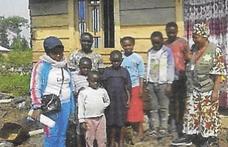 "Odeta and her two children are now safe on the Mugunga Plot. Pictured: center, her parents standing behind."
