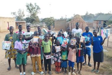 "In Kiryandongo Refugee Camp, Uganda, the Primary kids receive new school supplies."