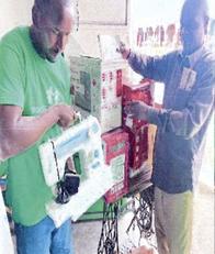 "Deo (Mama Zawadi's husband) and Jonathan set up 7 sewing machines."