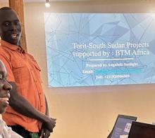 "Pastor Sunlight presents BTM's work in S. Sudan."