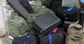 "Nine pieces of luggage plus seven duffle bags of supplies to give away."